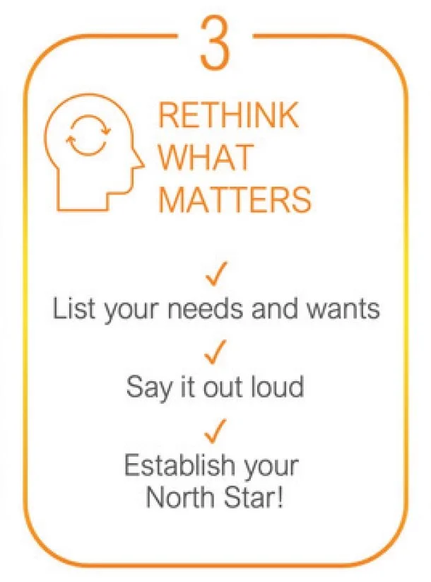 Pause and write down what you need and what matters most to you now. This will guide your decisions moving forward.